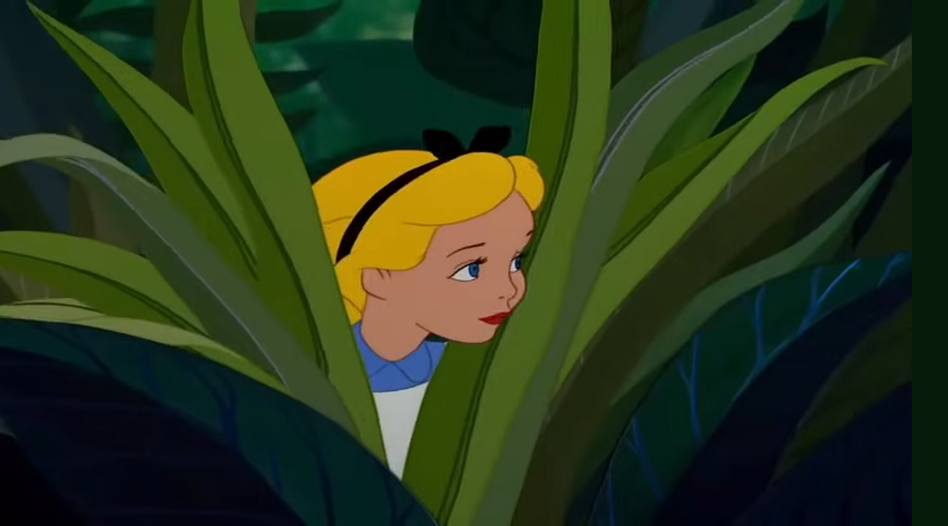 Када је о другој варијанти интрига везаних за ову бајку реч, а према којој она уопште није за децу, јер њена тематика заправо одговара одраслима, стоји да се првобитно невини елементи сада често користе као референца на супстанцу која мења свест: гусеница која пуши лулу, печурке, слеђење белог зеца.