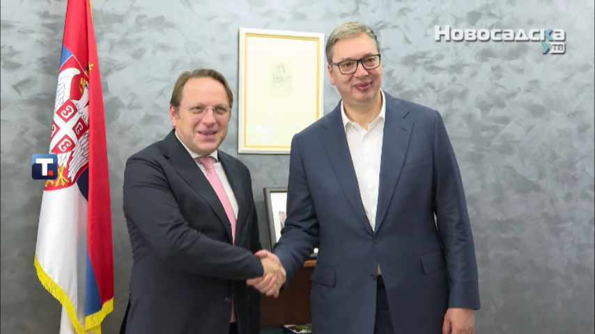 Председник Србије Александар Вучић састао се данас са европским комесаром за проширење Оливером Вархељијем у Бриселу.