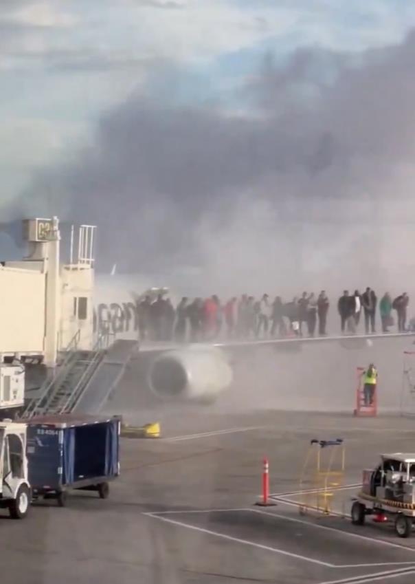 Снимци који су се појавили на друштвеним мрежама приказују ватру и дим како куљају из једног од мотора, док путници стоје на крилу авиона.