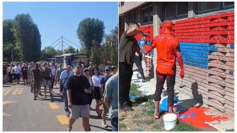 Неколико стотина грађана окупило се данас код окретнице на Штранду и мирном шетњом и узвицима „Србија!“ кренули су ка Лиманима, где су претходних дана прекречене фасаде на којима су биле осликане српске тробојке.