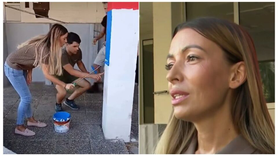 Потпредседница Владе и министарка привреде Адријана Месаровић учествује у помагању суграђанима да се на Лиману врате српске заставе на фасаде, које су блокадери током јучерашњег дана префарбали.