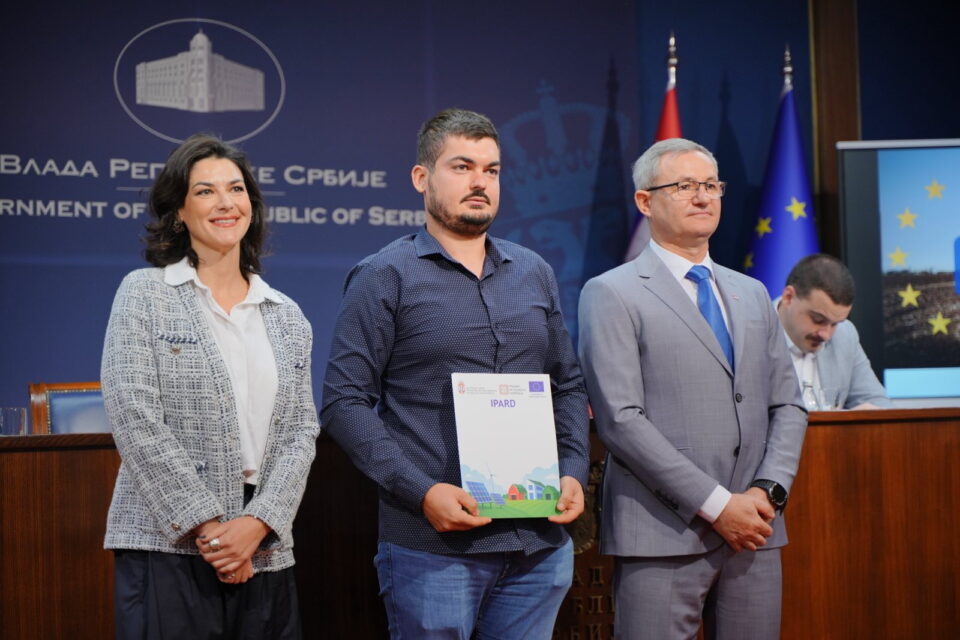 Mинистар пољопривреде, шумарства и водопривреде проф. др Драган Гламочић и заменица шефа Делегације Европске уније у Републици Србији Пламена Халачева уручили су данас првих 19 ИПАРД III решења за набавку нових трактора у оквиру Мере 1 – „Инвестиције у физичку имовину пољопривредних газдинстава“ корисницима који су успешно прошли поступак одобравања пројеката.
