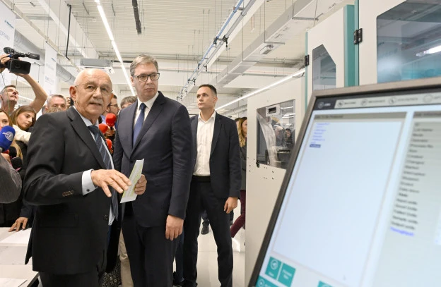 -Ово је једна од најбољих фабрика на свету. Камен темељац смо поставили пре годину и по дана. Јозеф ће рећи да је то што раде најбоље на свету, можда и јесте. Они раде документа. Видели смо машину, они је зову Милбауер киосци, ви дођете пред неку машину она вас слика. Сами завршавате пасоше. Имаћемо нове најмодерније пасоше за две године. Морамо да се припремимо за тај процес. Мораћемо да радимо и све друго, од возачке дозволе, личних карата, пријави за АПР. Све ћете моћи сами на најбржи начин. Машину ћемо гледати да инсталирамо за годину дана- истакао је председник.