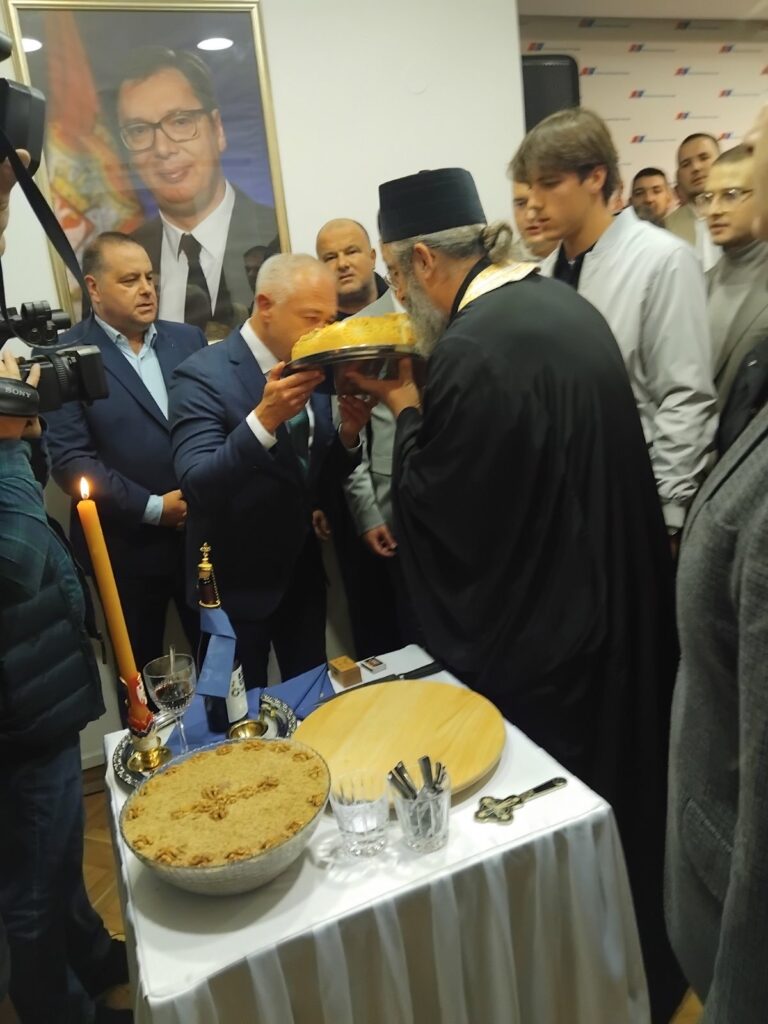 Просторије СНС су биле испуњене члановима и функционерима странке који су на достојанствен и свечан начин обележили славу, ломљењем славског колача, како је и било најављивано.