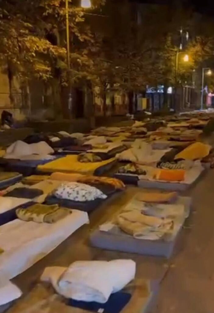 На фотографијама које су кружиле интернетом током ноћи из Инђије, кревет до кревета, душек до душека, све под конац, као да се спрема војна вежба. Али студената? Ни трага ни гласа.