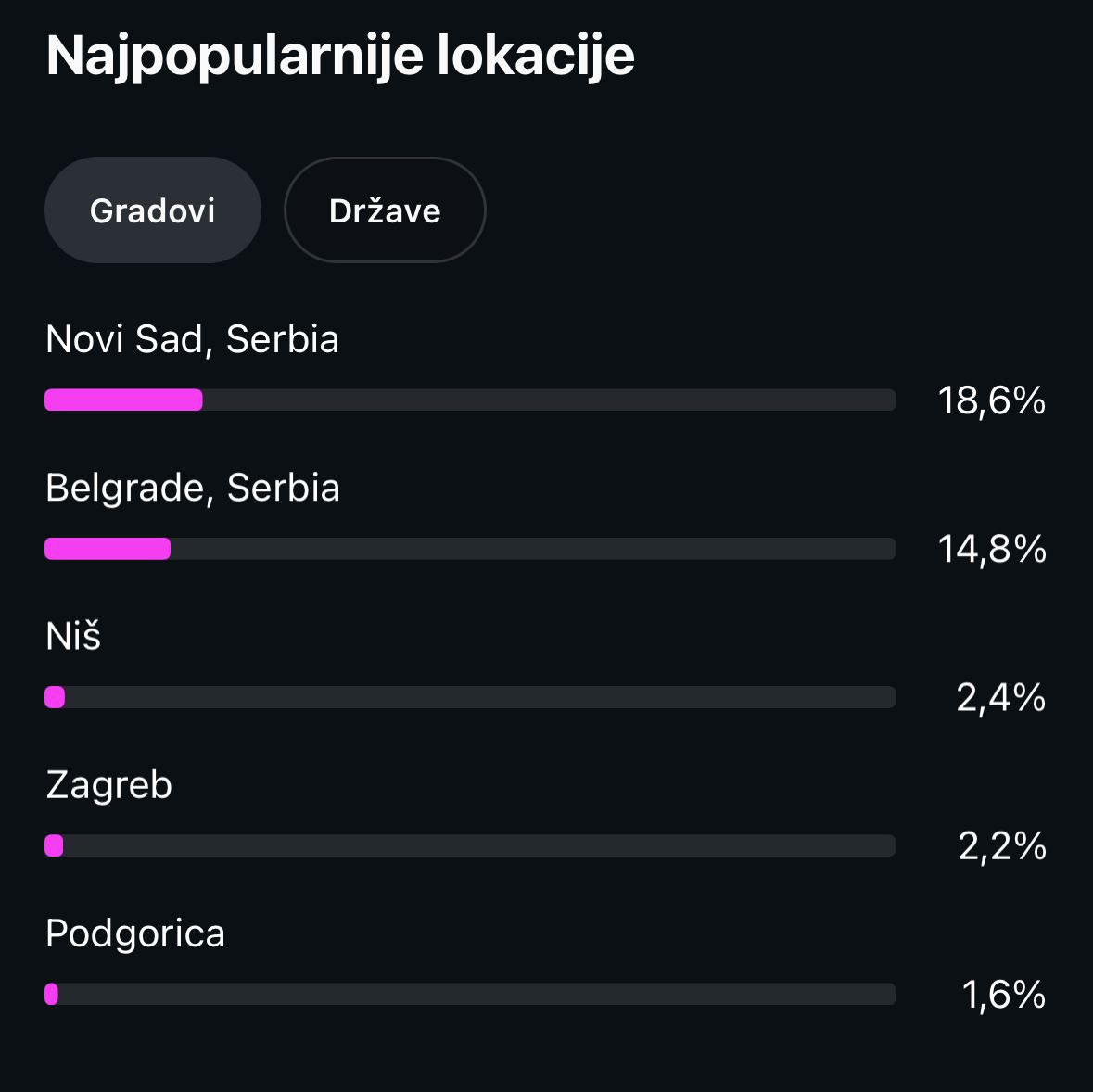 Посебно се истиче раст активности у оквиру „Reels“ формата, а у топ три најгледанија на нашем налогу су опроштање од Халида Бешлића, снимак покушаја тровања Мише Бачулова и наступ Јутјуб звезде Арије на Купусијади у Футогу.