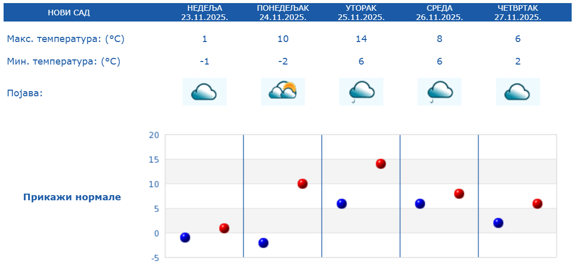 У Новом Саду овог јутра сумаглица и само степен изнад нуле. Од сутра више дневне температуре, а очекује се максималних 10 степени! Слично време биће и у уторак, када ће бити чак 14 што је изнад просека за ово доба године.
