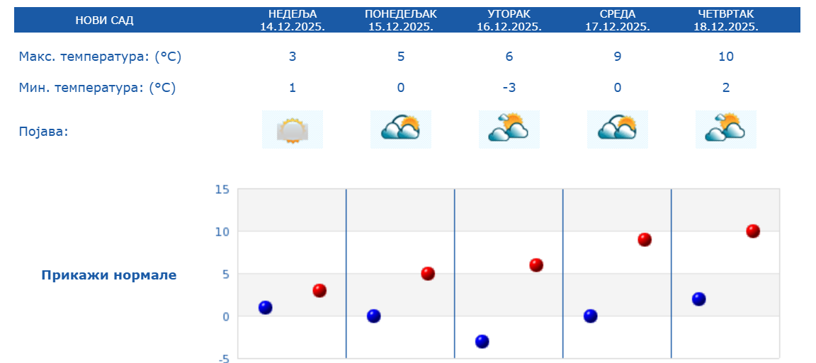 ДАНАС ОБЛАЧНО И ХЛАДНО, А ЕВО КАКВО НАС ВРЕМЕ ОЧЕКУЈЕ НА СВЕТОГ НИКОЛУ Детаљна прогноза за седмицу пред нама