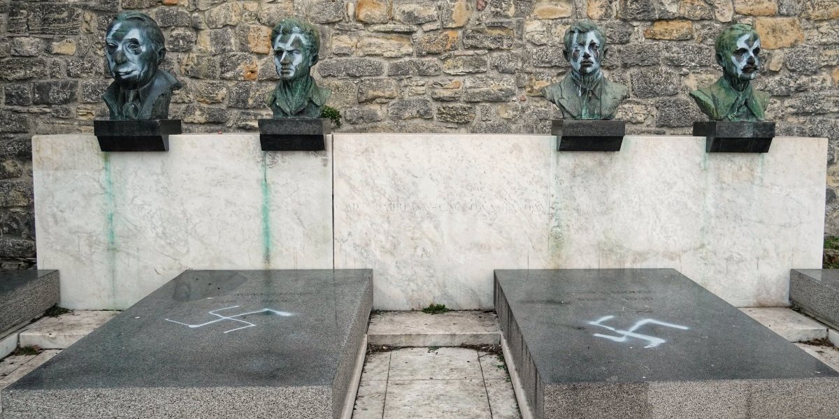 Непознати починиоци су у ноћи између суботе и недеље белом бојом нацртали кукасте крстове на бистама народних хероја, као и на мермерним плочама, односно њиховим гробницама.
