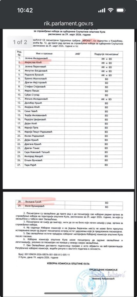 Како преноси портал НС уживо,удружење грађана „САМО ДА ВИДИМ“, са седиштем у Новом Саду, Ул. Браће Рибникара 63, пријавило је као посматрача Миломира Јаћимовића. Ради се о блокадерском аутопревознику, који има преко 30 прекршајних пријава због кршења јавног реда и мира, и кршење саобраћајних правила, али поседује и кривични досије. Шта таква особа, без икаквог предзнања о правилима рада бирачког одбора, склона инцидентном понашању, уопште тражи у Кули на бирачким местима?